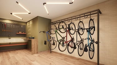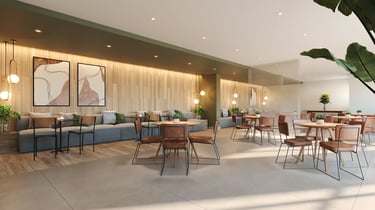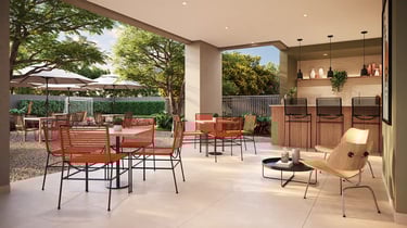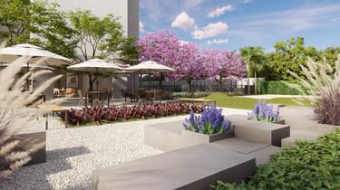O condomínio possui mais de 100 árvores e um parque linear, além de infraestrutura para futura instalação de ar condicionado nos dormitórios. Todas as áreas comuns são entregues equipadas e decoradas. Conta com piscina adulto com raia de 25 m² e deck molhado, loja de conveniência 24 horas, portaria social com área de espera segura para veículos de aplicativos e transporte escolar, gerador de energia, bicicletário com mais de 500 vagas, duas portarias de pedestres com clausura, medidores individuais de água instalados e previsão para individualização da medição de gás. Os portões possuem sistema de abertura automatizado, e os caixilhos grandes proporcionam maior iluminação e ventilação, com persianas de enrolar nos dormitórios. O exclusivo bar terranoá apoia as áreas comuns do condomínio com bebidas e refeições rápidas.